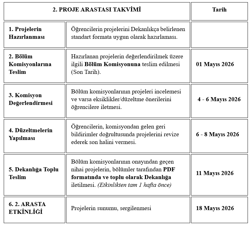• 2. PROJE ARASTASI TAKVİMİ